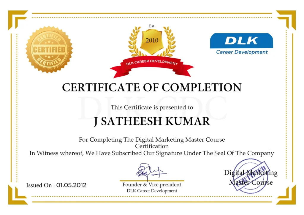 - After completion of the training, successfully, the student will be issued a course completion certificate.